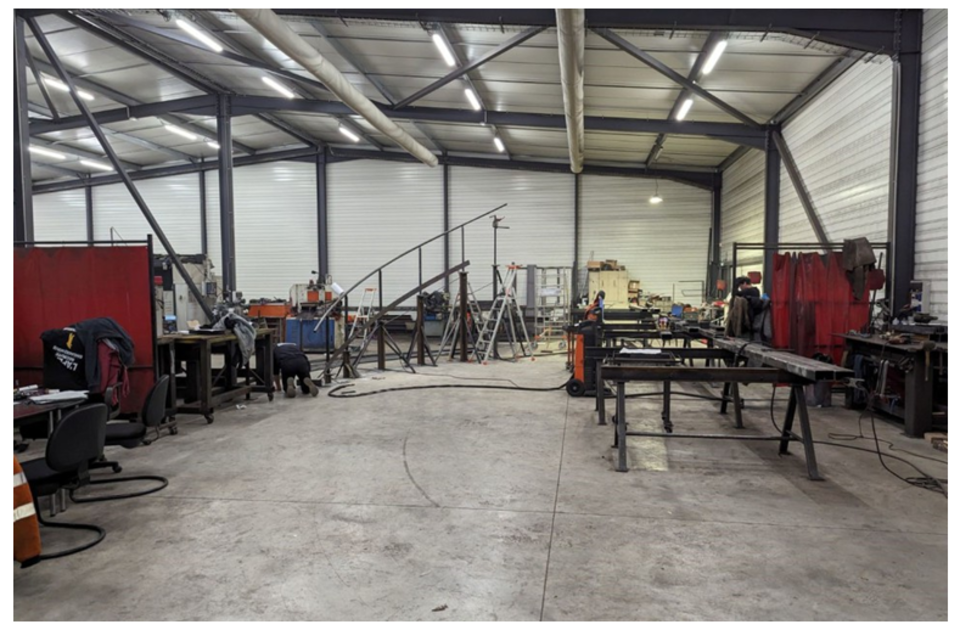 de 600 m², équipé de manière performante avec des outils tels qu'une presse plieuse, deux scies à ruban et une cisaille, pour ne citer que quelques-uns.